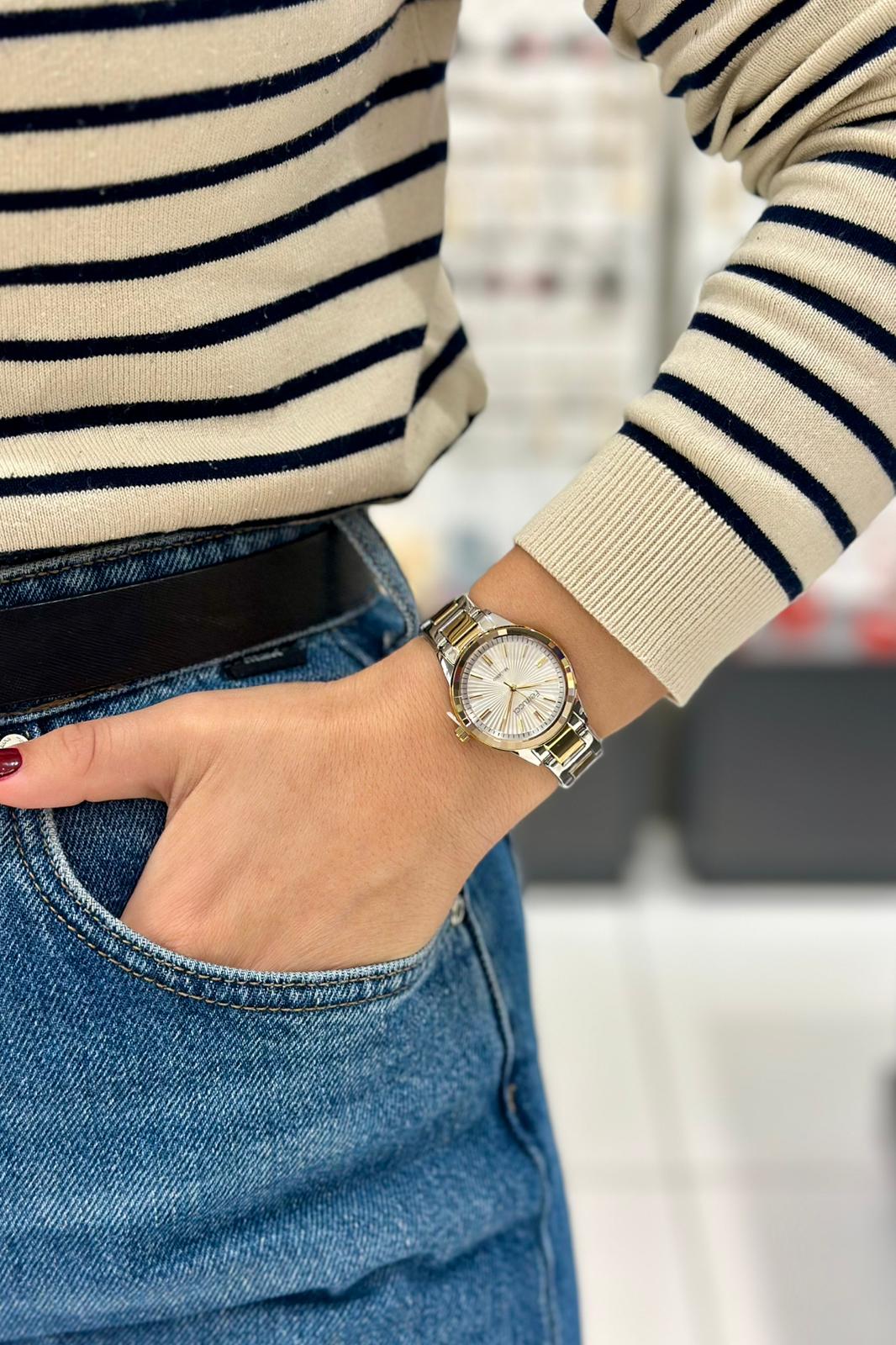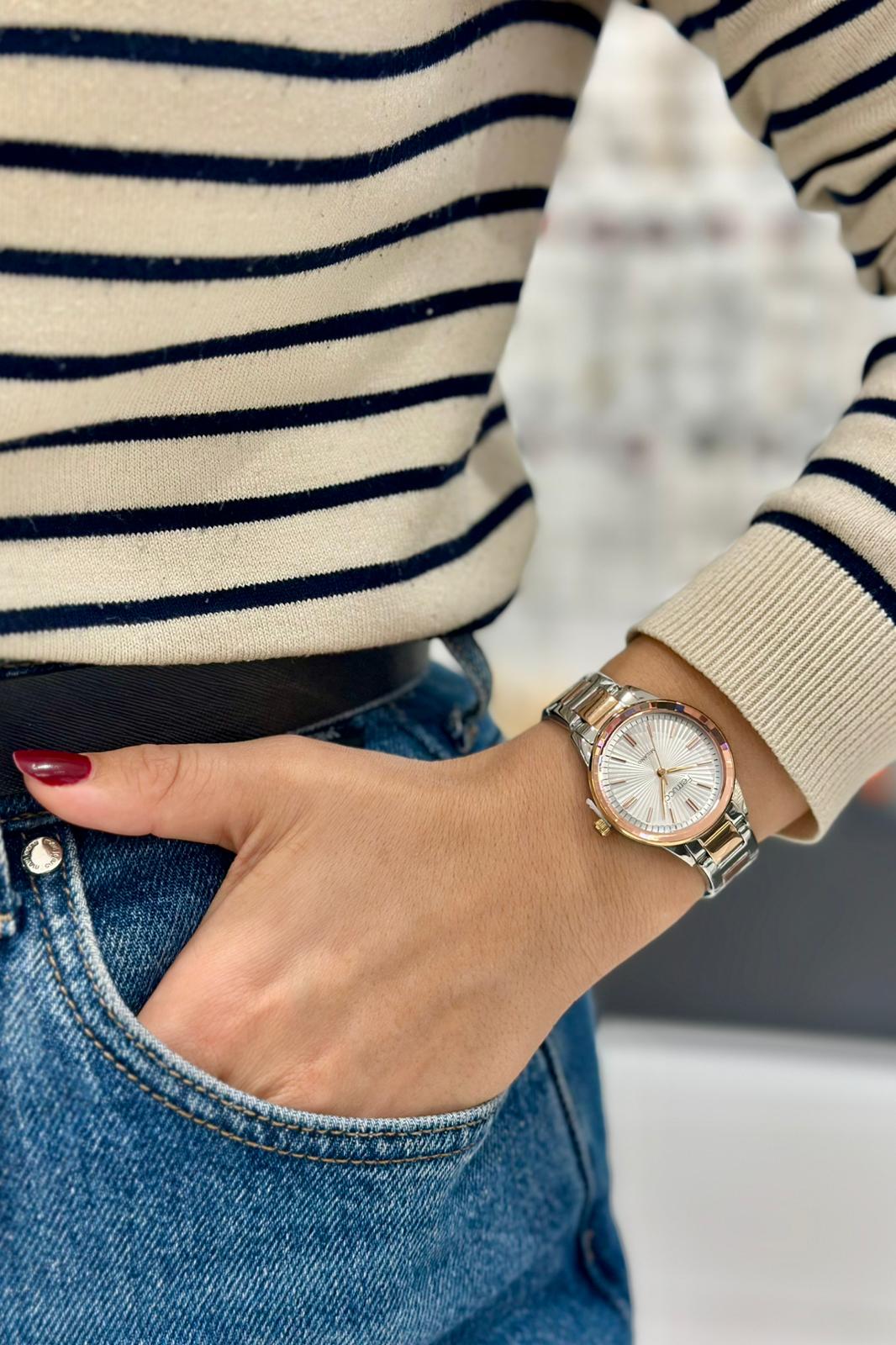 Modern çizgileriyle dikkat çeken bu kadın kol saati, hem klasik hem de spor kombinlerle uyum sağlar. 2 yıl garantili mekanizması ile güven veren Ferrucci saat, şıklığı ve kaliteyi bir arada arayan kadınlar için ideal bir tercihtir.