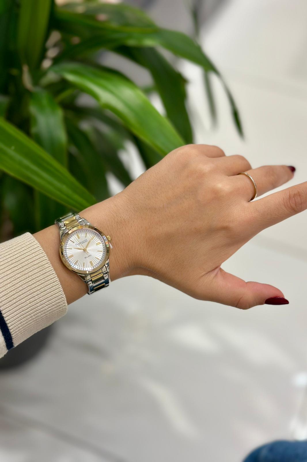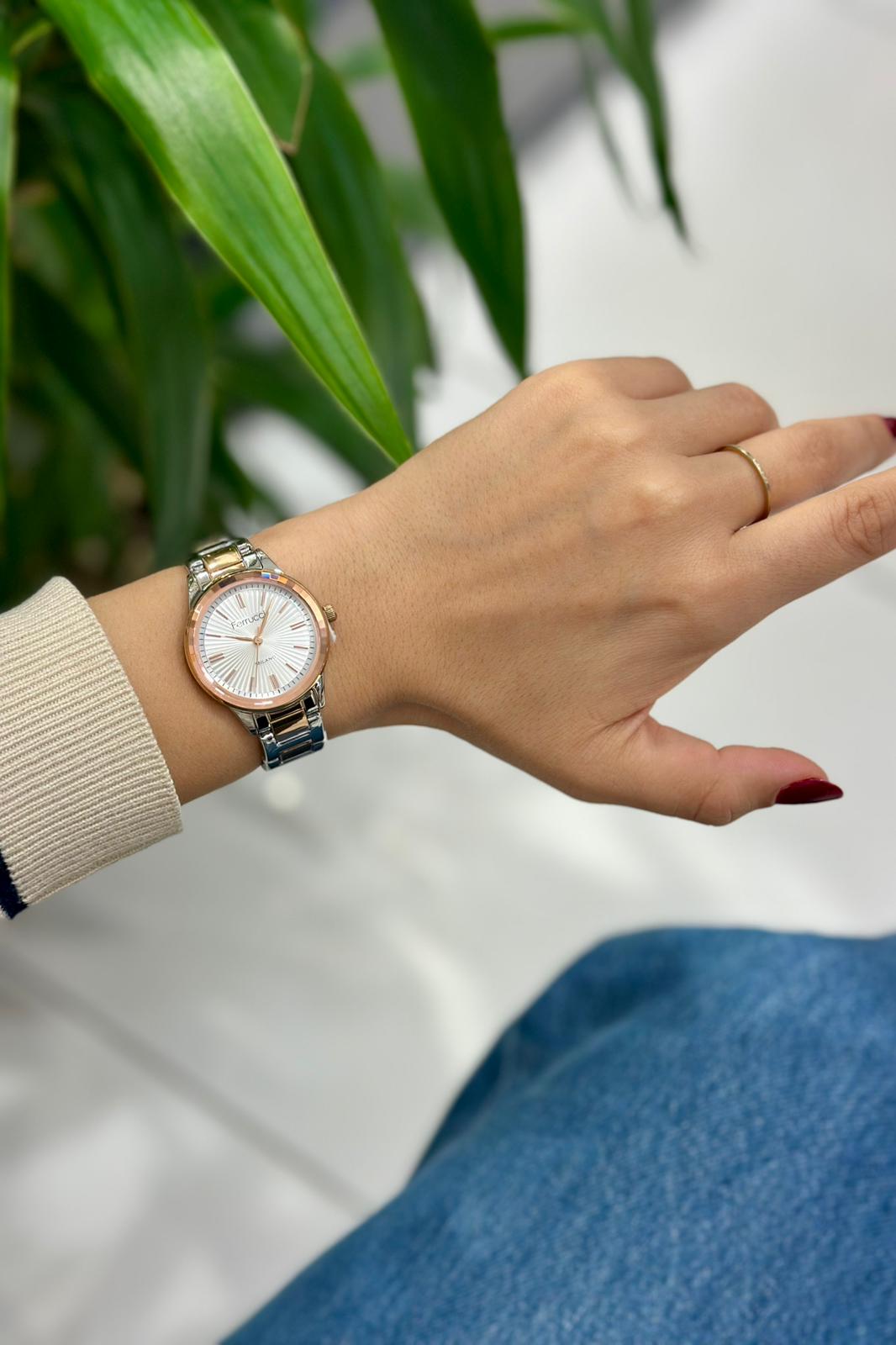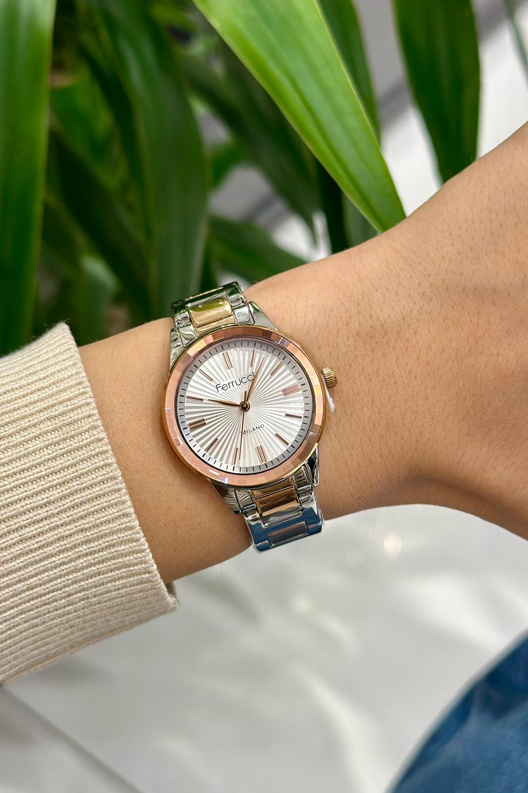 Bileğinizde zarif bir duruş sergileyen Ferrucci kadın kol saati; stil, dayanıklılık ve fonksiyonelliği tek üründe buluşturur.